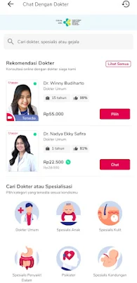 - Selain itu dapat memilih dari dokter rekomendasi.